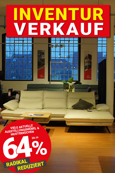 Bis zu 64% Rabatt auf Ausstellungsküchen und -möbel! Unsere Jahres-Inventur steht an. Da eine solche Bestandsaufnahme zeitaufwändig ist und Kapazitäten bindet, bieten wir dir viele interessante Angebote in allen Abteilungen zu äußerst günstigen Inventurpreisen an. Wer zuerst kommt, spart zuerst!