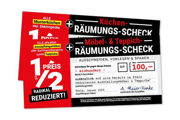 Hier entdeckst du eine Auswahl unserer Artikel im Räumungsverkauf! Weitere reduzierte Angebote findest du vor Ort in unserem Küchen- + Möbelhaus!