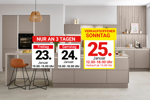 So. verkaufsoffen (25.01.): 13:00 - 18:00 Uhr | Alle Infos zum Aktionswochenende Grüne Woche und Jubiläums-Küchenverkauf