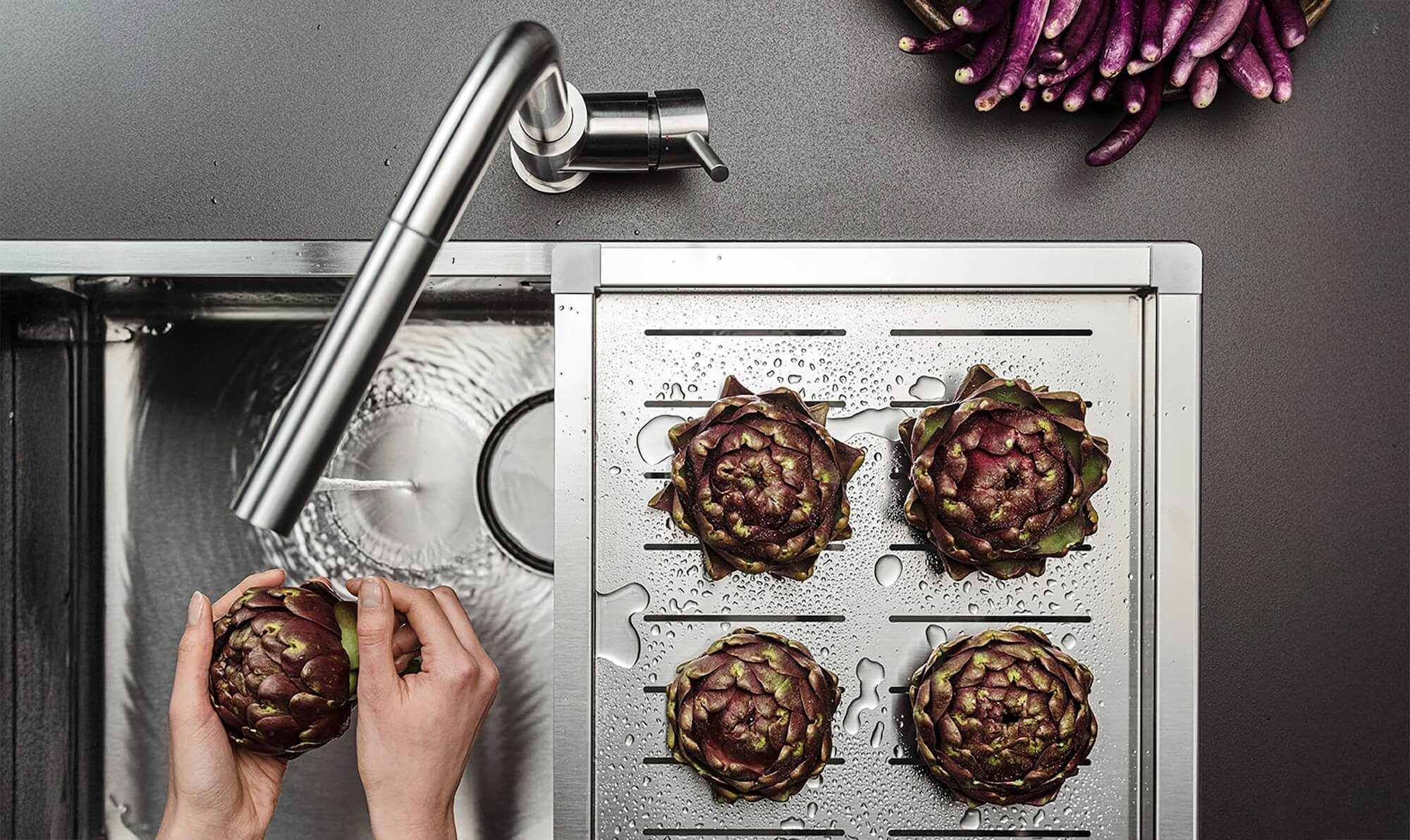 Seit 2018 verhindert das patentierte No-Drop™ System zuverlässig die Bildung von Kondenswasser an der Abzugshaube. Spezielle Filter fangen die Wassertropfen auf und leiten sie in einen Sammelbehälter, der sich leicht entleeren und reinigen lässt. Auch die Filter selbst sind pflegeleicht und spülmaschinenfest – so bleibt alles hygienisch sauber.
