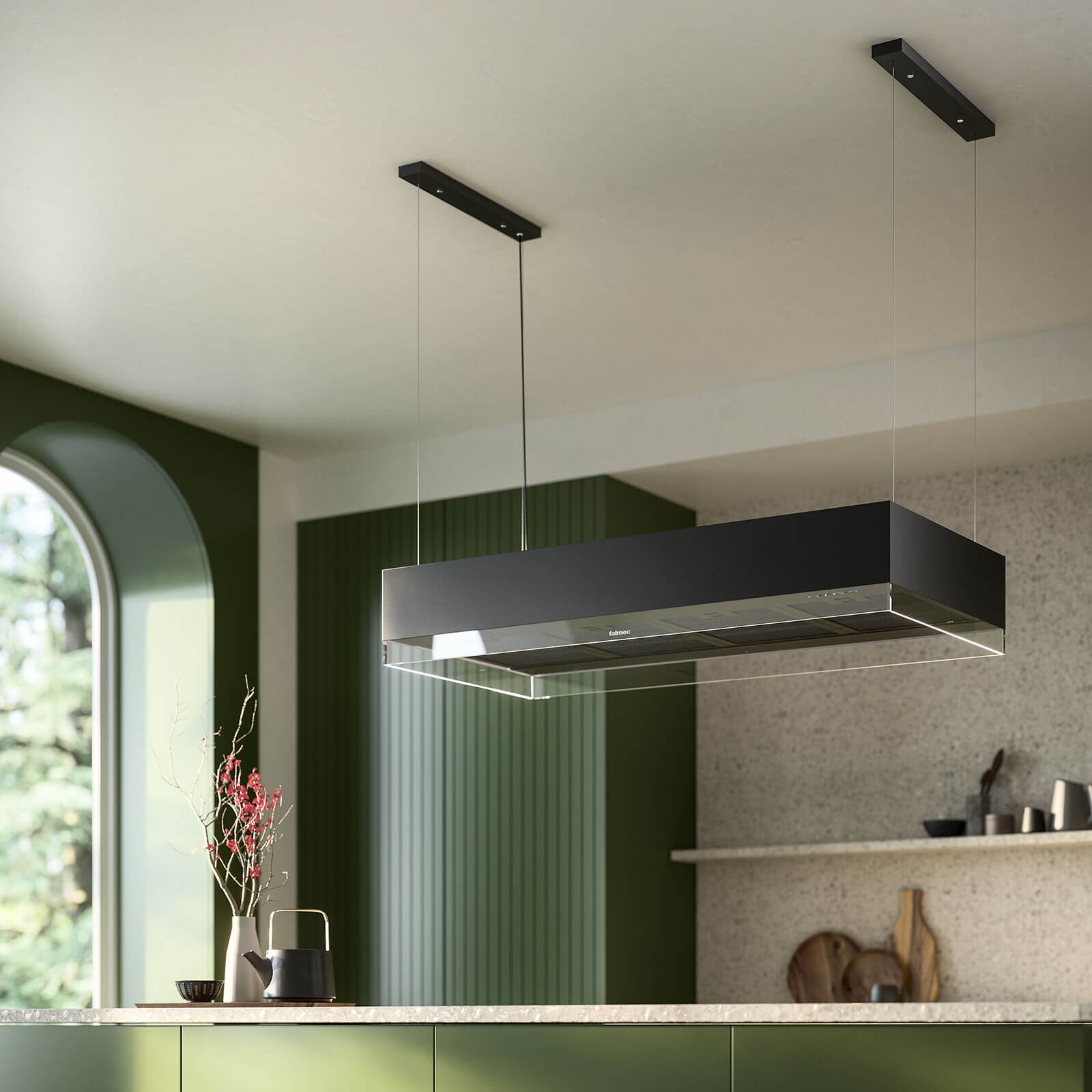 Die innovative Technologie Multi-Air von Falmec saugt den Wasserdampf und Aromen besonders effektiv auf kompakter Fläche an. Und zwar sind hier die Lüftungsmotoren horizontal aufgeteilt, sodass die Kochbestandteile und Dünste gleichmäßig angesaugt werden. Ein weiterer Vorteil ist die geringe Höhe von nur 10 Zentimetern auf der die Motoren verteilt sind, das spart Platz und sorgt für reduzierten Lärm.